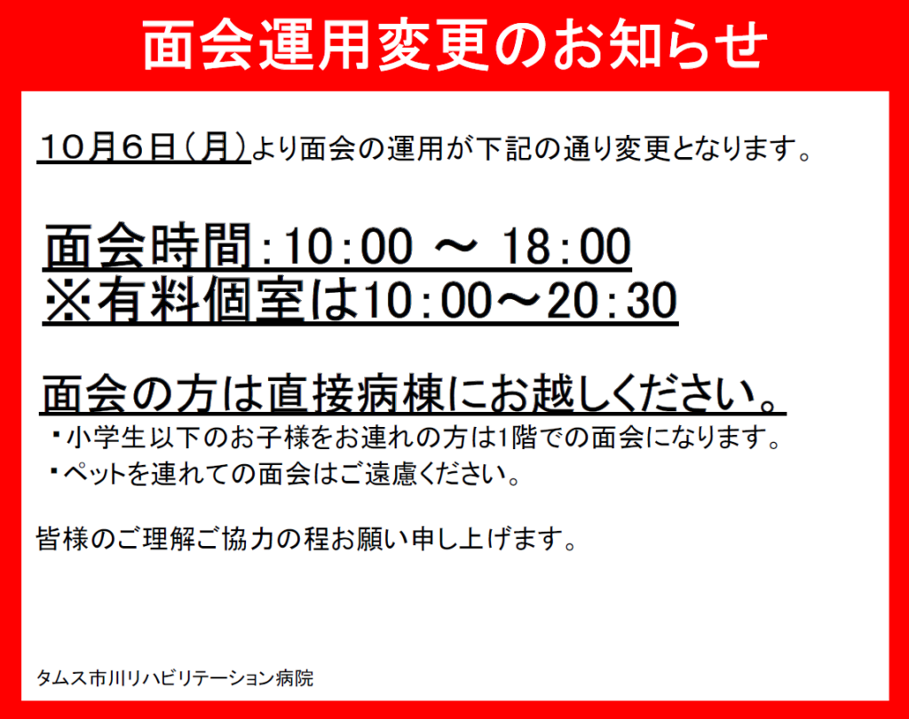 面会運用変更のお知らせ