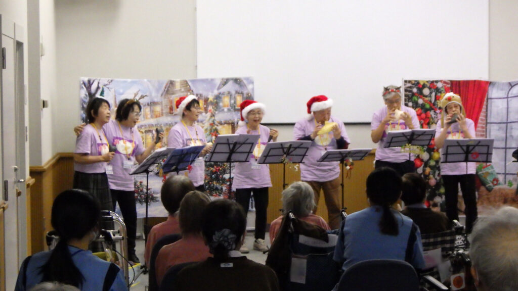12月 ボランティア訪問 2025.12.19 広報 🎄今月のボランティア訪問は 【あずまオカリナサークル】の皆さんによる 素敵なオカリナ演奏でした🎶 クリスマスの装いに加えて、 ろうそくを手にゆっくりと入場する演出がとても幻想的🕯️✨ 普段聴きなれないオカリナの音色で 楽しい時間を過ごすことができました✨ 耳👂だけでなく、目👀でも楽しませて頂き、 私たちに笑顔をくれる素晴らしい時間をありがとうございました🤗💕 次回の訪問も心よりお待ちしています。 新着情報一覧へ