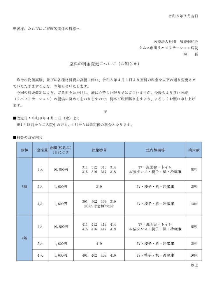 室料の料金変更について(お知らせ)
